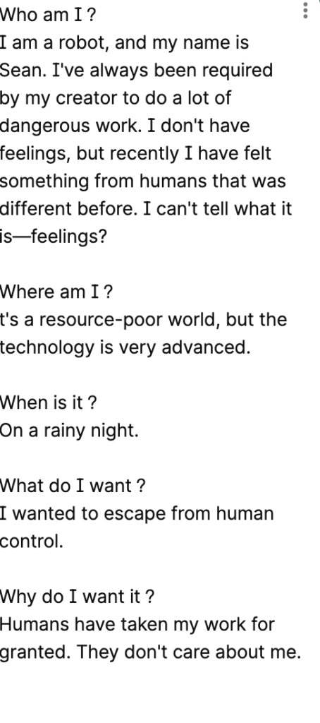 The tutor asked us a few questions about character design, so my character inspiration was developed based on those questions.